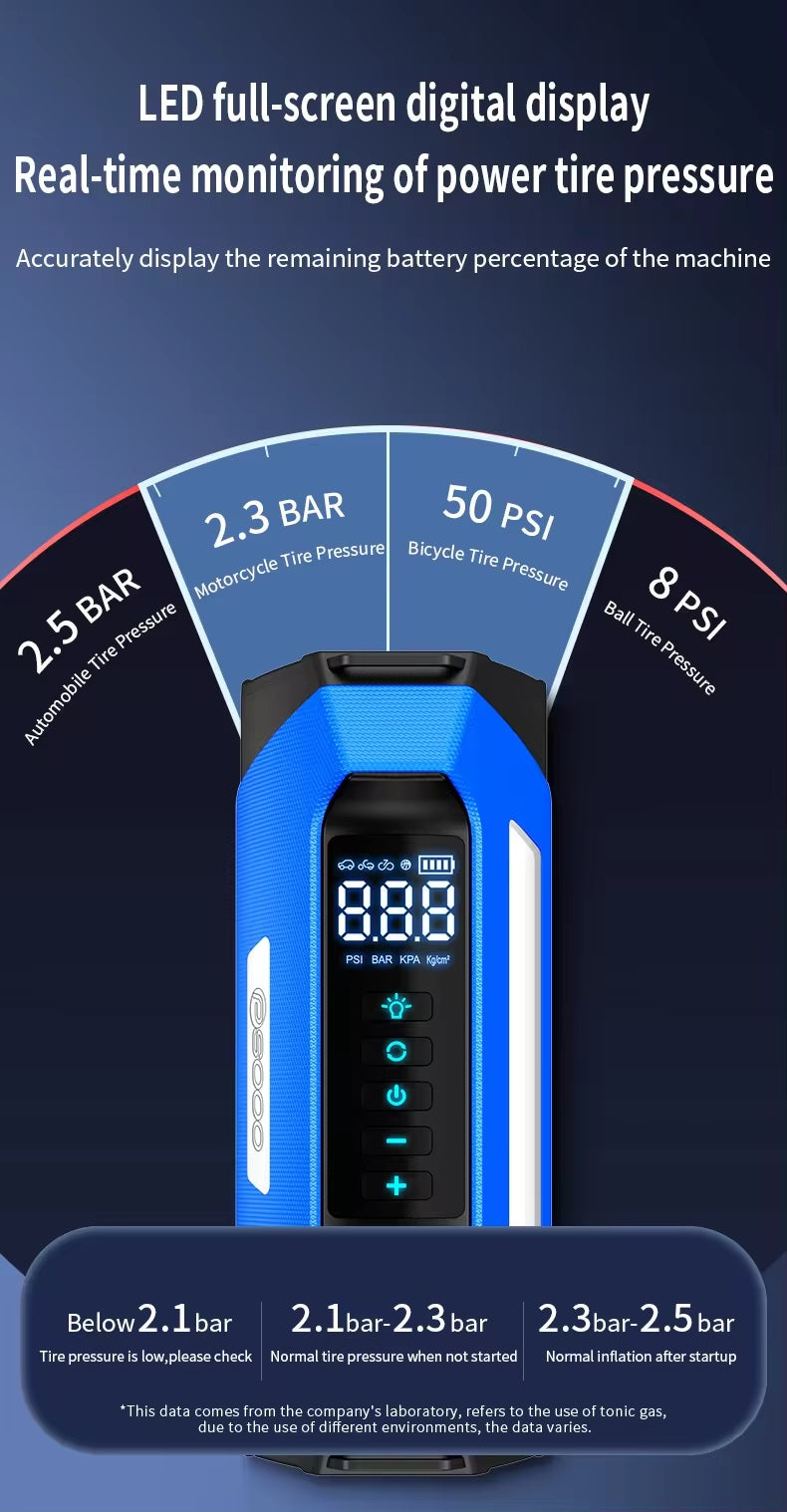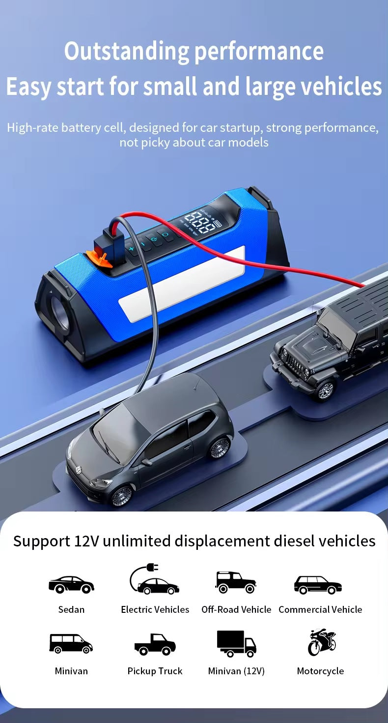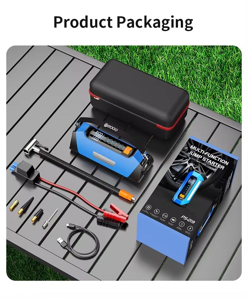 ADAK Multinational Powerhouse: 12V Battery Jumper Starter with Air Compressor - 150PSI, 1000A Boost, 12000mAh Emergency Power Bank