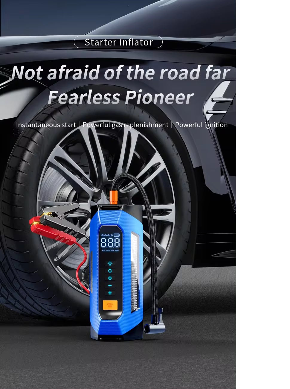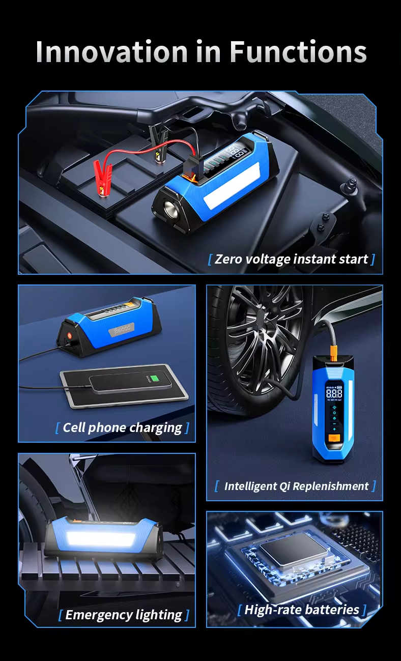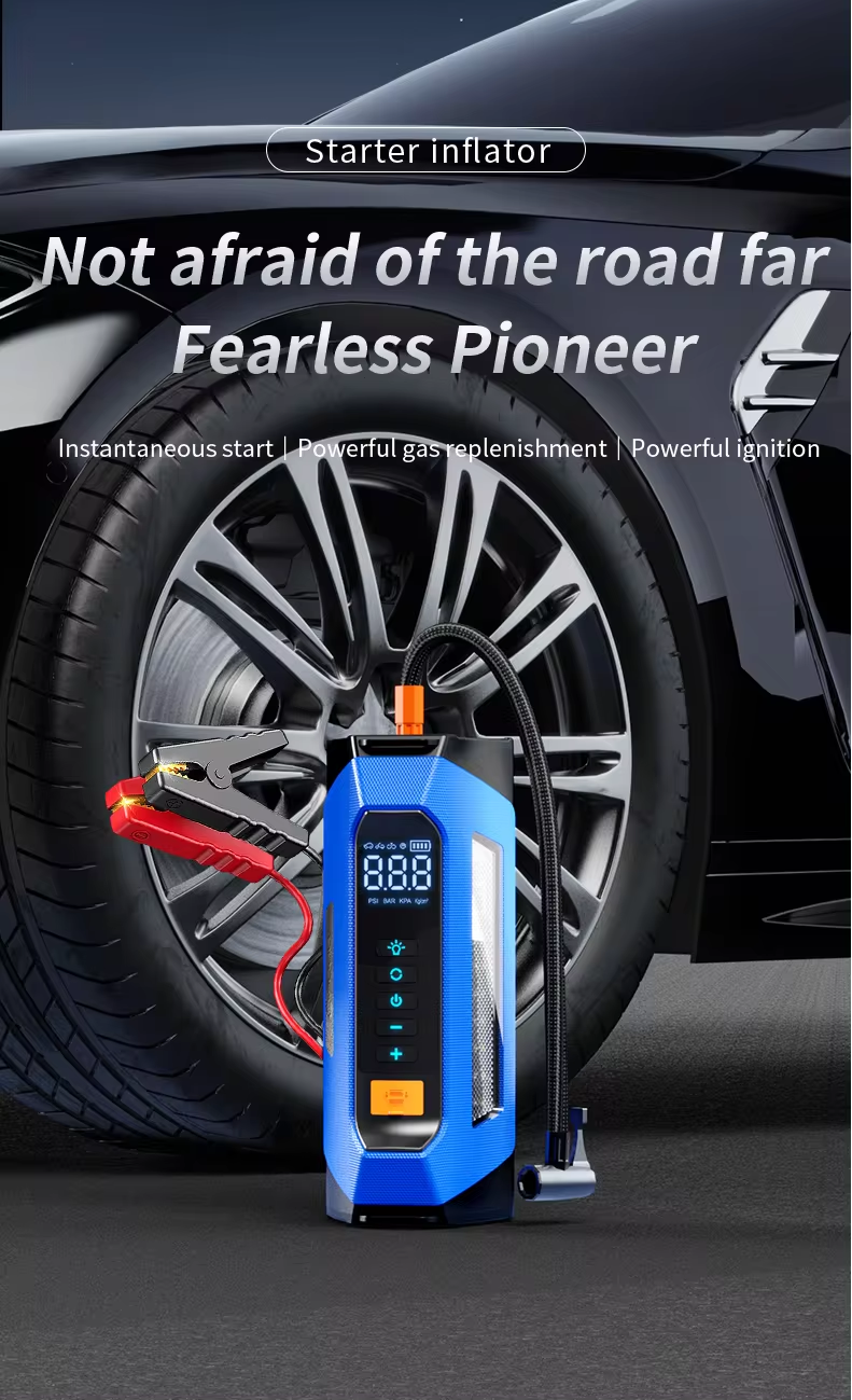 ADAK Multinational Powerhouse: 12V Battery Jumper Starter with Air Compressor - 150PSI, 1000A Boost, 12000mAh Emergency Power Bank