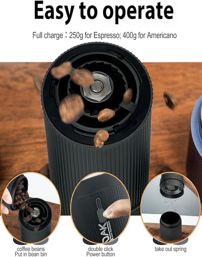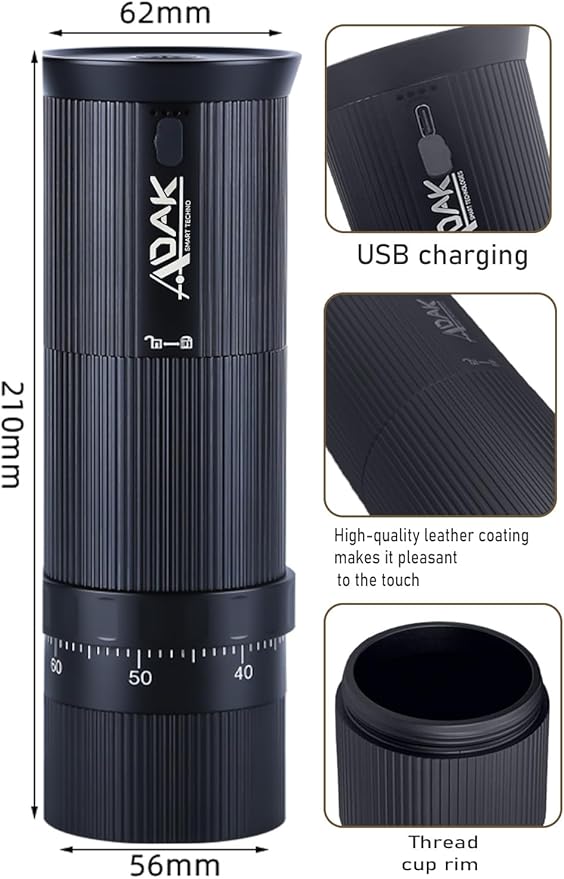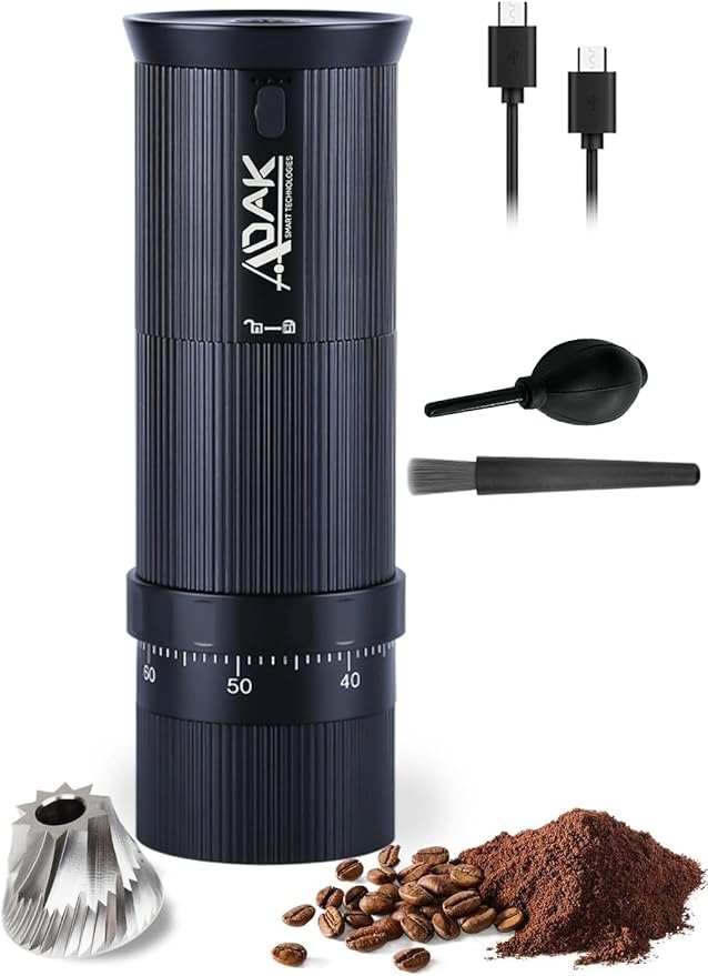 ADAK Premium Portable Coffee Grinder, USB-C Rechargeable, Electric Coffee Grinder, Stainless Steel Conical Burr, 40g Capacity,120 Grind Settings, with Cleaning Brush, Travel-Friendly Grinder (BLACK)