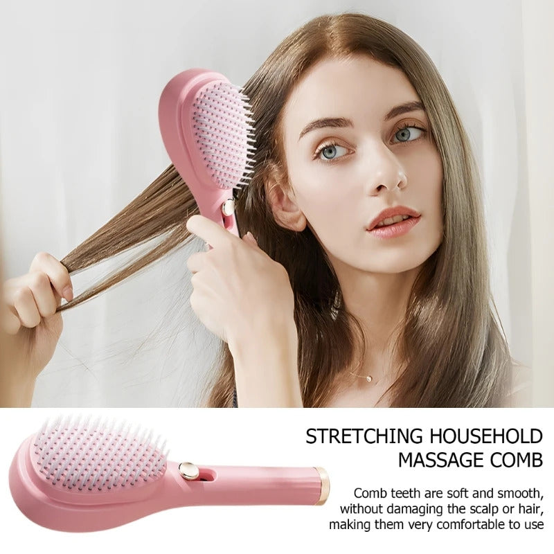 ADAK Telescopic Self Cleaning Brush, One-Click Cleaning Comb and Brush, Massage Comb, Scalp Cleansing, Combs for Women and Men