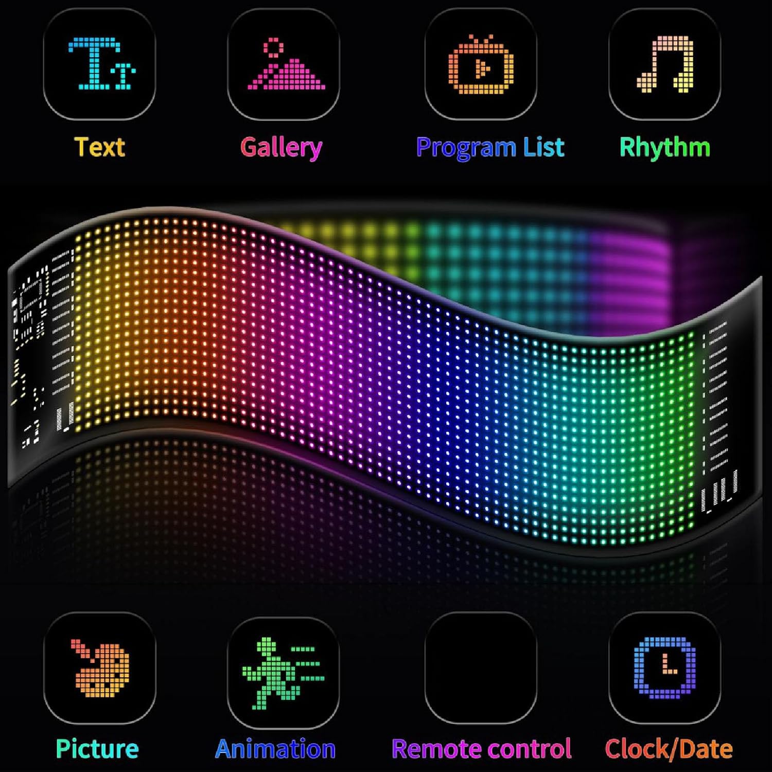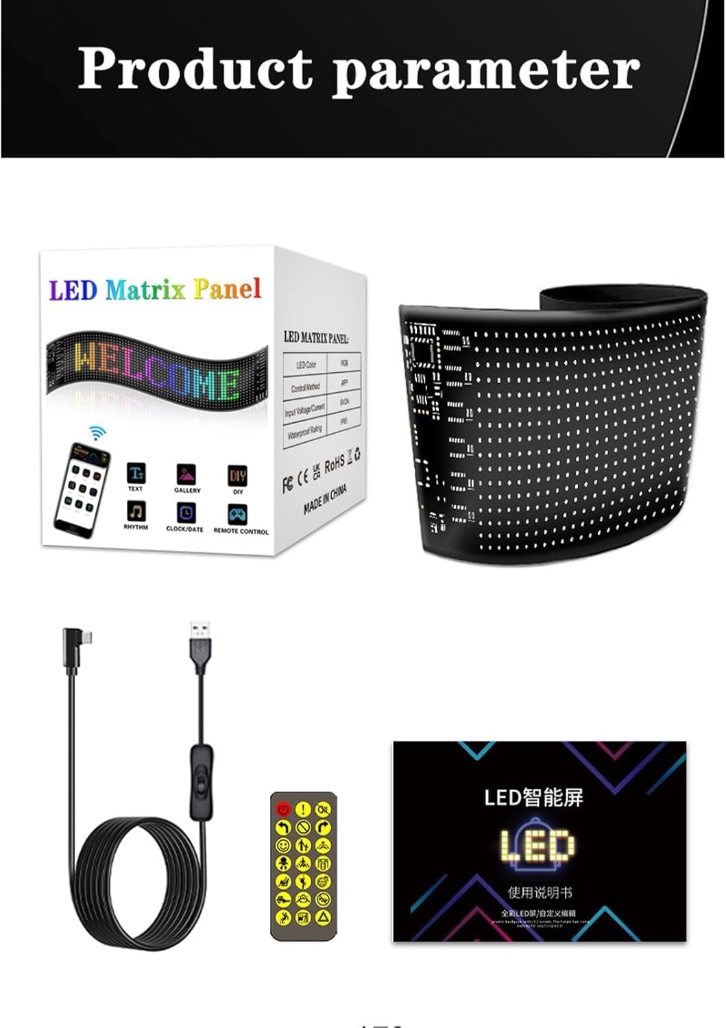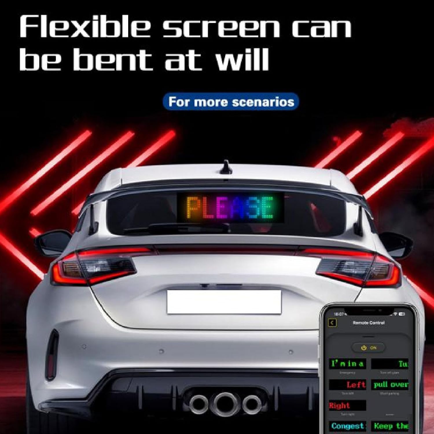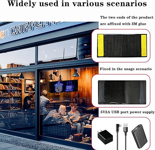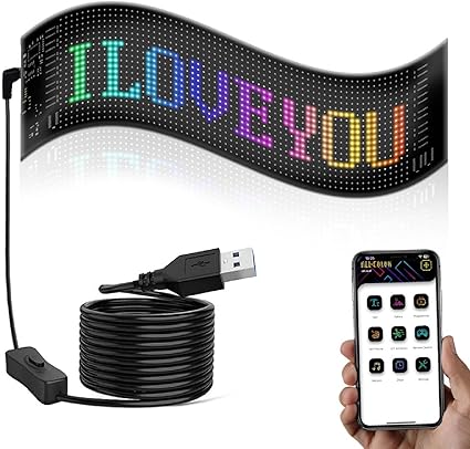 Car Window LED Display, Text Pattern Display, App Control Car Window LED Display, Car LED Panel, Flexible LED Screen, Text Pattern Animation Flexible LED Display for Car Party Wedding 16x32cm