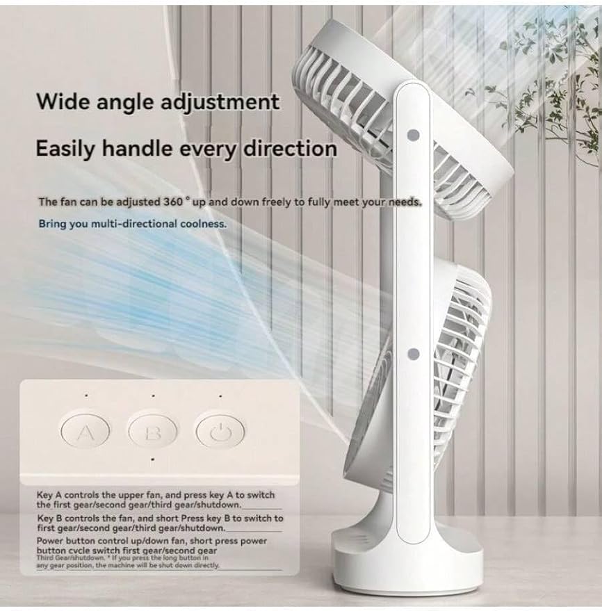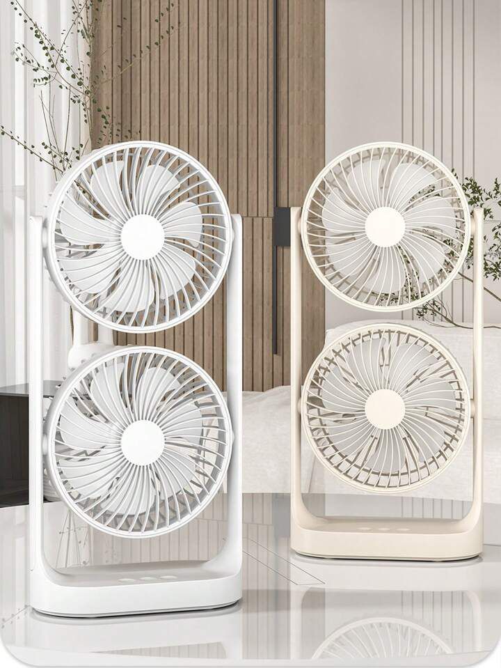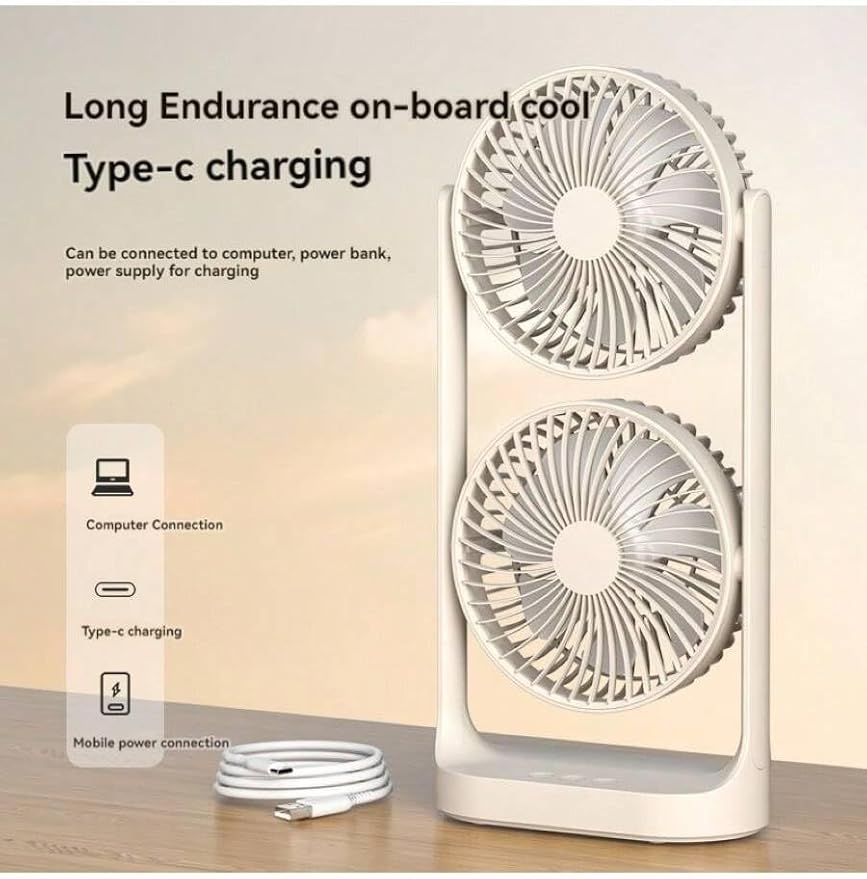 Desk Fan Rechargeable with Adjustable Wind Speed and Multi-directional Airflow, Rechargeable Dual Head Fan for Various Needs, Compact and Lightweight for Office and Home