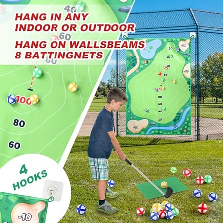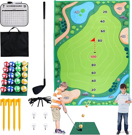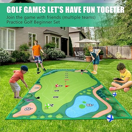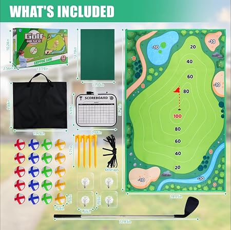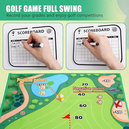 Golf Chipping Game,Golf Gift Set,Golf Practice mat,Golf Game with Golf Hitting Mat and Other Golf Accessories Indoor Outdoor Games for Adults and Kids Home Backyard Office(Golf Club Included)