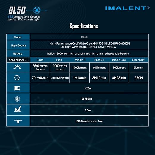 IMALENT BL50 Rechargeable EDC Flashlight 3600 Lumens Dual Light Source Mini Torch with White LED and UV Light, Built-in Rechargeable Battery