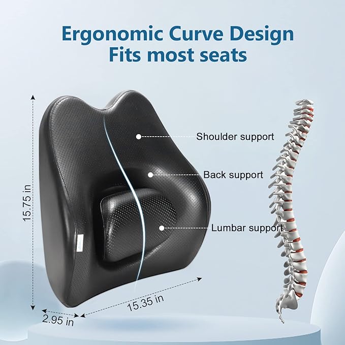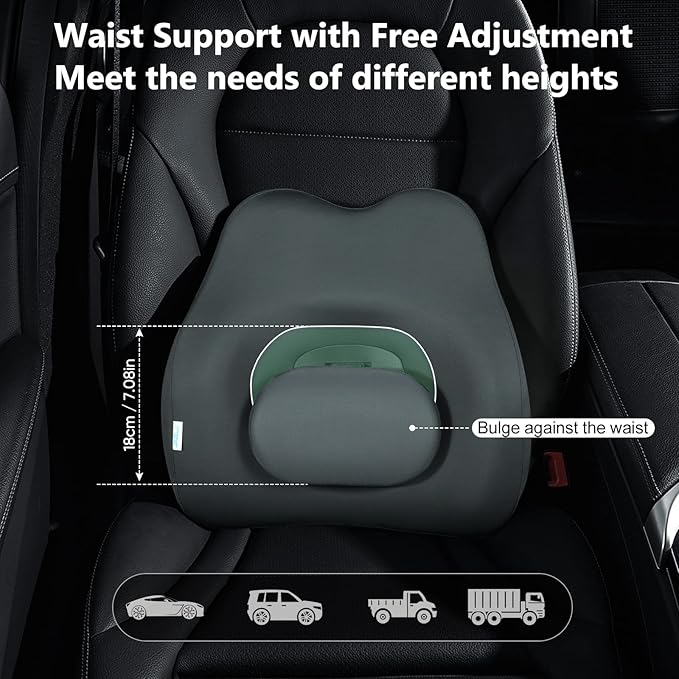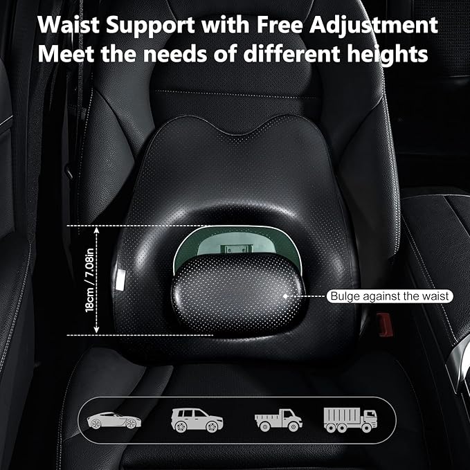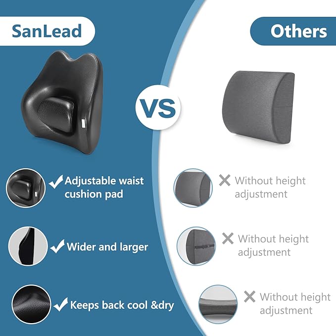Lumbar Support Pillow with Adjustable Bracket, Memory Foam Lower Back Posture Cushion, SanLead Ergonomic Back Rest for Car Seat