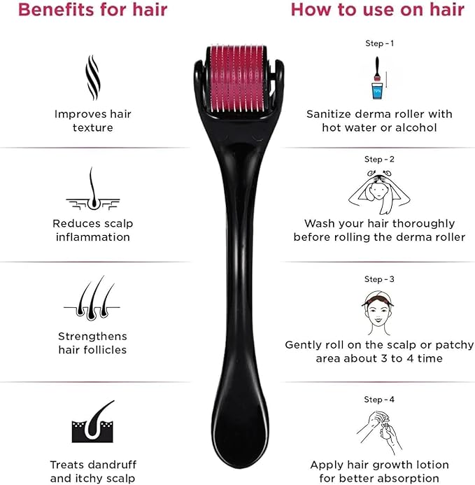 ProGrip Tools Derma Roller 0.5mm with 540 Titanium Needles : Skin Rejuvenation, Hair Growth, and Cellulite Reduction - Pain-Free Treatment for Thicker, Elastic Skin and Fuller Hair (Pack of 1)