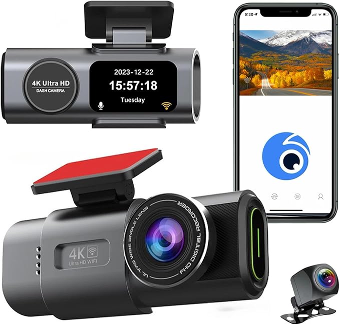 Front and Rear Dash Camera, Small Wireless WiFi Dashcam for Cars, Front and Back Mount..