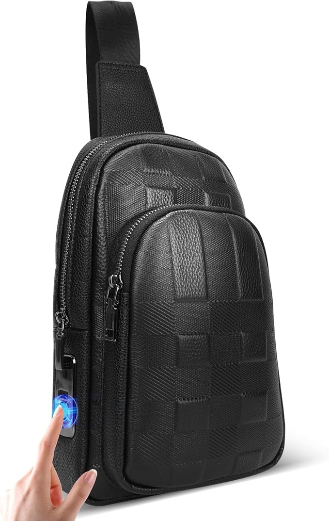 LeeRong Fingerprint Unlock Anti Theft Proof Crossbody Bag Men for Travel Genuine Leath..
