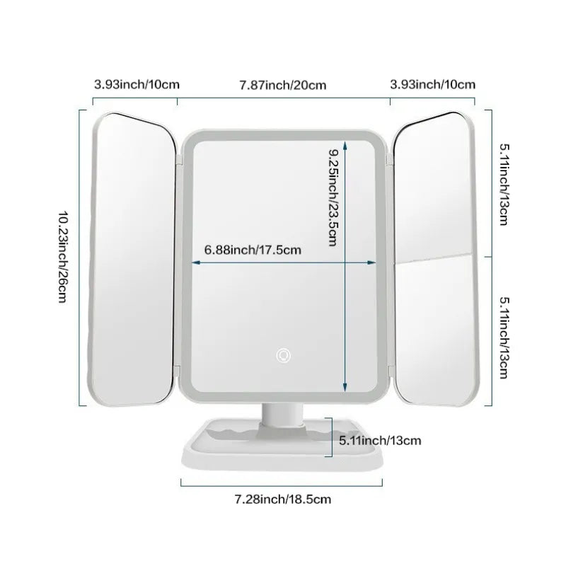 BROSANOS LED Trifold Vanity Makeup Mirror, 3 Color Changing Modes, USB Charging, Touch..